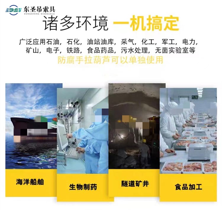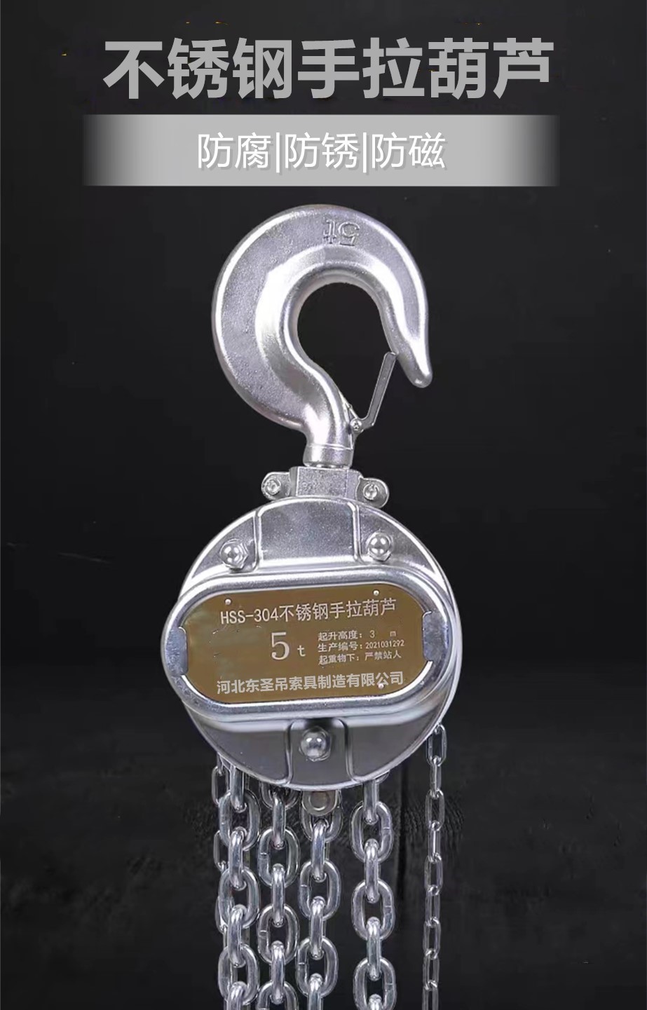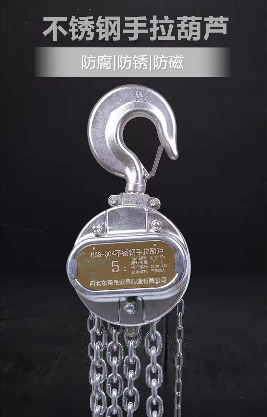 4、用途广泛,不锈钢手拉葫芦适用于井下作业海上工作潮湿的仓库、工厂、矿山,建筑工地码头船务,仓库等场所。 |